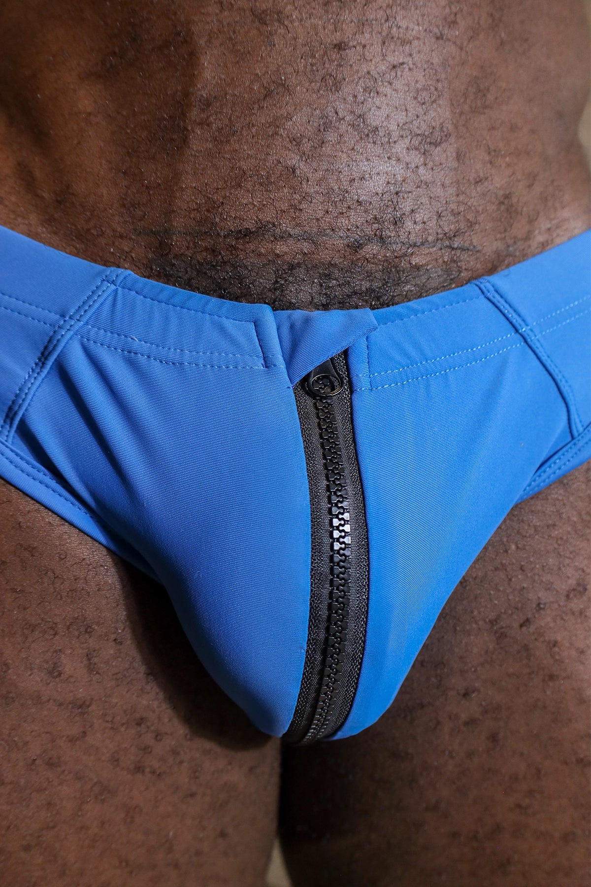 Unzip Me Swim Briefs with Perforated Mesh Back - Light Blue M / Blue