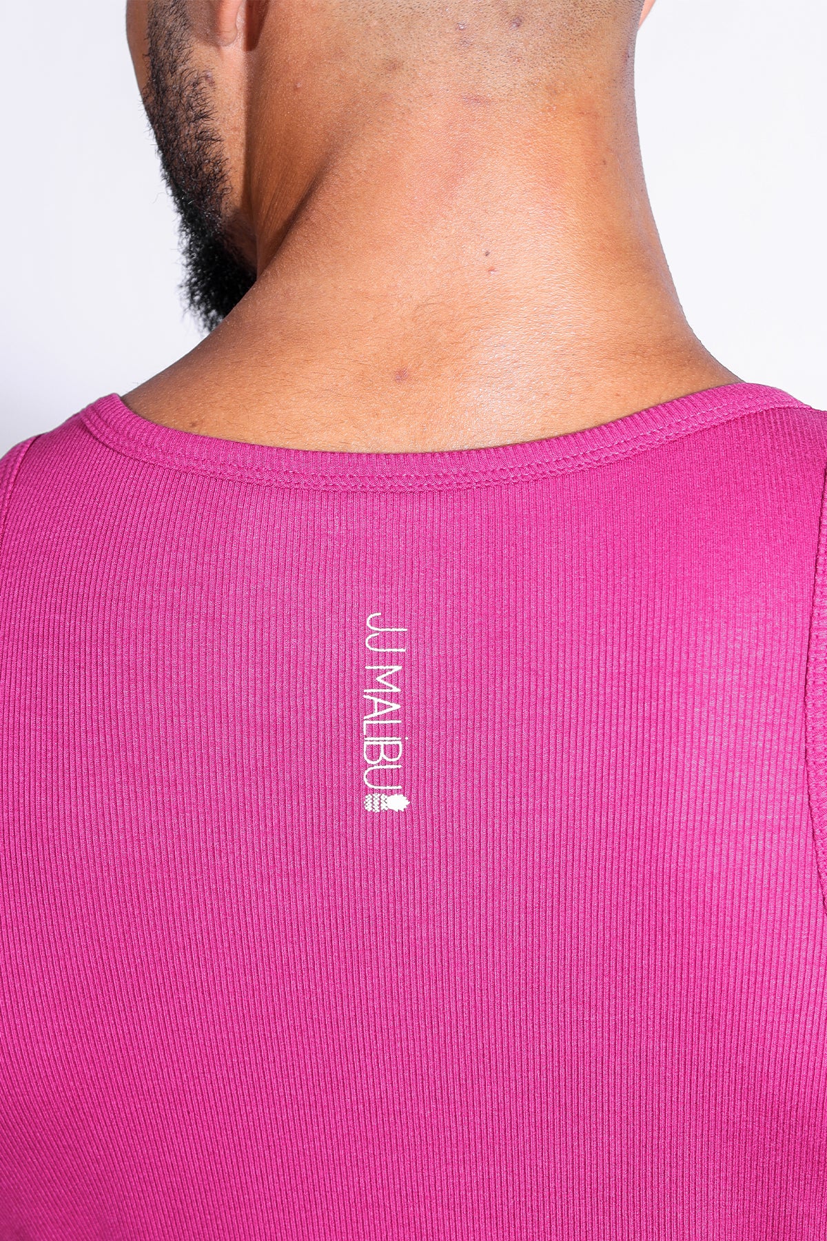 Dreamy Muscle Fit Ribbed Cropped Tank - Dark Pink