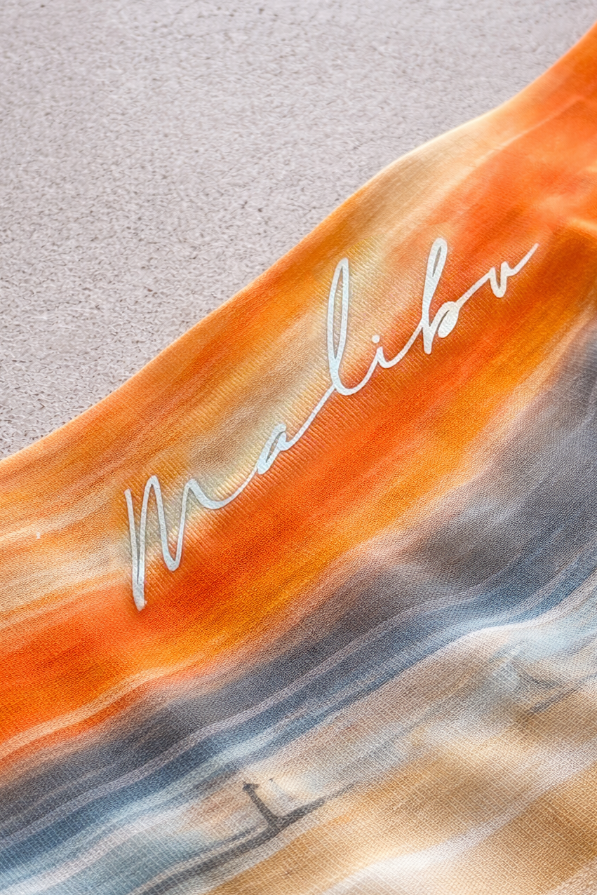 • Printed cursive Malibu logo on front waistband